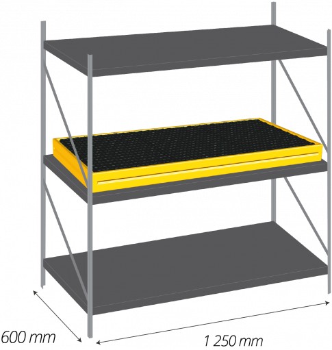 Bac de rétention à poser sur étagère ou rayonnage, finition Polyéthylène.
