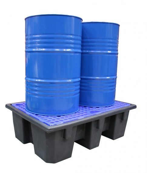 Bac de rétention en polyéthylène pour 1 palette de 2 fûts de 220 L verticaux.