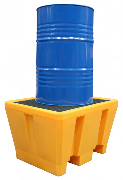 Bac de rétention en polyéthylène haute densité, capacité 1 fût de 220 L vertical.
